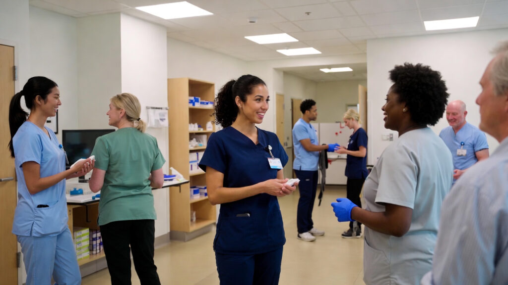 This technique helps reduce tension, regulate heart rate, and improve focus during busy shifts or emotionally intense moments.