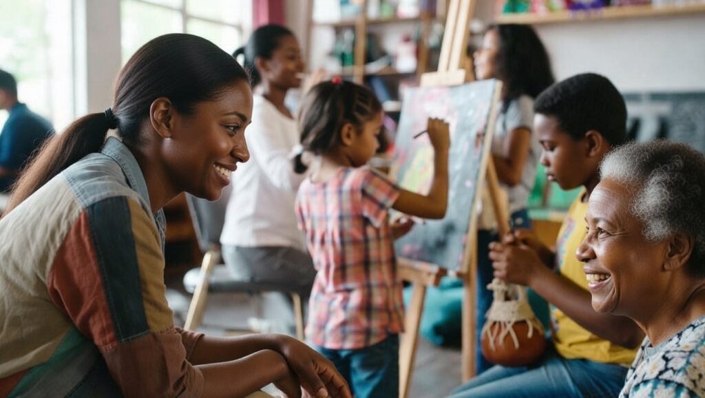 Whether it’s a caregiver painting after a long shift or a child crafting in a community program, the act of creating itself is therapeutic.